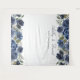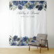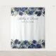 Navy Blue Floral Wedding Photo Booth Backdrop. This design features an elegant navy blue and white floral theme. Personalize this custom design with your own text.