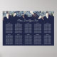 Navy blue wedding 10 table seating chart with watercolor floral in blue and cream with accents of rose gold foliage . Personalize text, font style, color and size.