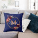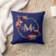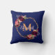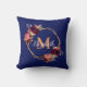 Navy blue florals gold geometric monogram name throw pillow