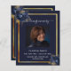 Navy blue florals gold photo funeral program