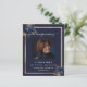 An elegant 2-page program. A dark blue background, a faux gold frame, blue florals and space for a photo. Personalize and add name, dates and your text.