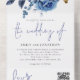 Navy Blue Florals QR Code Script Wedding All In One Invitation