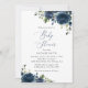 Navy Blue Flowers, Greenery, Boho, Baby Shower Invitation