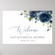 Navy Blue Flowers, Greenery, Boho, Bridal Welcome Poster