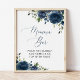 Navy Blue Flowers, Greenery, Boho, Momosa Bar Poster