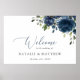 Navy Blue Flowers, Greenery, Boho, Wedding Welcome Poster