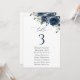 Navy Blue Flowers, Greenery, Seating Chart Cards