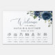 Navy Blue Flowers, Greenery, Wedding Timeline Sign