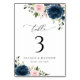 Navy Blue Flowers, Pink Flowers, Table Numbers