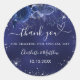 A navy blue background decorated with blue flowers and faux silver sparkles. The blue color is uneven. Personalize and add your names and wedding date. With the text: Thank you for sharing our special day.