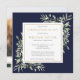 An elegant navy blue botanical personalized watercolor greenery celebration of life photo remembrance invitation. Designed by Thisisnotme©