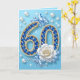 Navy Blue Gems White Rose and Pearls 60th Birthday Card