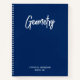 Customize the navy blue background color, or white modern brush script style and size as needed to create your own class notes blank notebook.