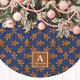 Navy Blue Gingerbread Man Monogram Christmas Brushed Polyester Tree Skirt