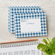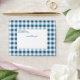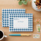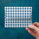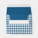 Nautical navy blue gingham check is a charming way to celebrate a new baby boy with this matching custom envelope featuring a pre-printed return address and matching printed blue interior.