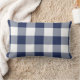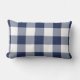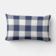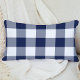 Navy Blue Gingham Check Plaid Pattern Lumbar Pillow