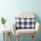This throw pillow features a traditional gingham check plaid pattern in navy blue and white.