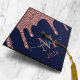 Navy Blue Girly Rose Gold Glitter Drips Monogram Graduation Cap Topper