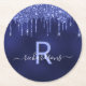 A chic navy blue background decorated with faux glitter drips, paint dripping look.The blue color is uneven. Personalize and add your family name and monogram letter. The name is written with a modern hand lettered style script with swashes. To keep the swashes only delete the sample name, leave the spaces or emoji's in front and after the name. Light blue and white letters.