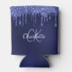 Navy blue glitter drips white name can cooler
