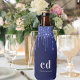 Navy blue glitter drips white nautical name bottle cooler