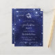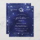 A navy blue background, decorated with faux glitter dust. The blue color is uneven. Personalize and add a name and party details. The text graduation and the name is written with a modern hand lettered style script.