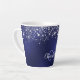 A navy blue background. The blue color is uneven. Decorted with faux glitter drops. Personalize and add a name and monogram initials. The name is written with a modern hand lettered style script.