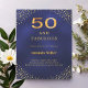 A navy blue, uneven colored background. Decorated with golden corners. Personalize and add a name and party details.