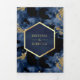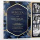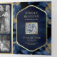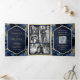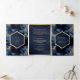 Navy Blue Gold Abstract Fluid Ink QR Code Wedding Tri-Fold Invitation