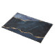 Elegant watercolor agate in shades of navy blue trimmed with faux gold glitter combine in this design.