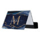 Navy Blue Gold Agate Geode Girly Script Monogram Desk Business Card Holder