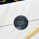 This stylish luxury navy blue and gold agate monogram sticker is perfect for wedding invitation seals, favors, and more.