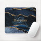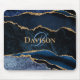 Navy Blue Gold Agate Monogram Elegant Mouse Pad