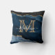Navy Blue Gold Agate Monogram Name Script Initial Throw Pillow