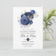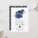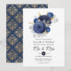 Navy Blue, Gold and Silver Floral Wedding Invitation