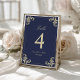 Elegant navy blue and gold baroque wedding table number card, perfect for guiding guests to their seats at your reception. Designed with ornate gold flourishes and customizable details, this table number is ideal for formal, luxury, and classic weddings. Coordinates with the full navy blue and gold baroque wedding invitation suite for a cohesive look.