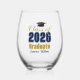 Navy Blue Gold Class of 2026 Graduation Stemless Wine Glass