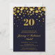 Navy Blue & Gold Confetti 20th wedding anniversary Invitation