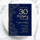 Navy Blue Gold Floral 30th Birthday Party Invitation