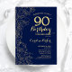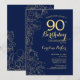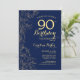 Navy Blue Gold Floral 90th Birthday Party Invitation