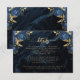 Navy Blue Gold Floral Agate Script Wedding Details Enclosure Card