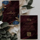 Navy Blue Gold Floral Burgundy QR Code Wedding Invitation