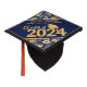 Navy Blue Gold Floral Class of 2024 Graduation Graduation Cap Topper
