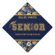 Navy blue and gold floral Class of 2025 graduation cap topper. Personalized with your name and school name.
