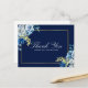 Navy Blue Gold Floral Elegant Script Thank You Postcard