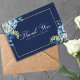 Elegant blue and white roses decorate this beautiful floral evening thank you card. The chic faux gold foil frame is accented with pretty indigo watercolor flowers and a lovely light yellow botanical sprig. The couple's names are written in classic white cursive script within the rectangle border of this modern winter card.