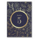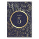 Navy Blue, Gold Floral Pattern Wedding Table Number