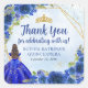 Navy Blue Gold Floral Princess Crown Thank You Square Sticker