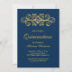Navy Blue Gold Flourish Diamond Quinceanera Invitation