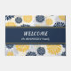 This pretty personalized door mat features a navy blue and gold flower pattern as the top and bottom border. At the center is a matching navy blue banner that is lined with gold lines. At the center is your text in white. Bold and beautiful! Be sure to see the matching products in our store. Graphic floral design credit to Malachi Designs on Etsy.